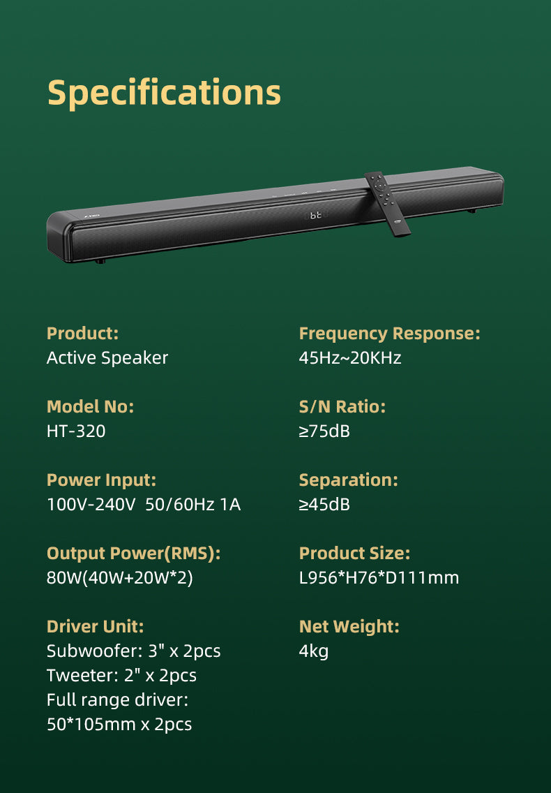 HT-320—2.1 Home Theater Soundbar with Built-in Subwoofer